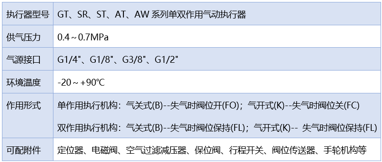 注:如需详细执行器参数,请进入气动执行器页面进行查阅。